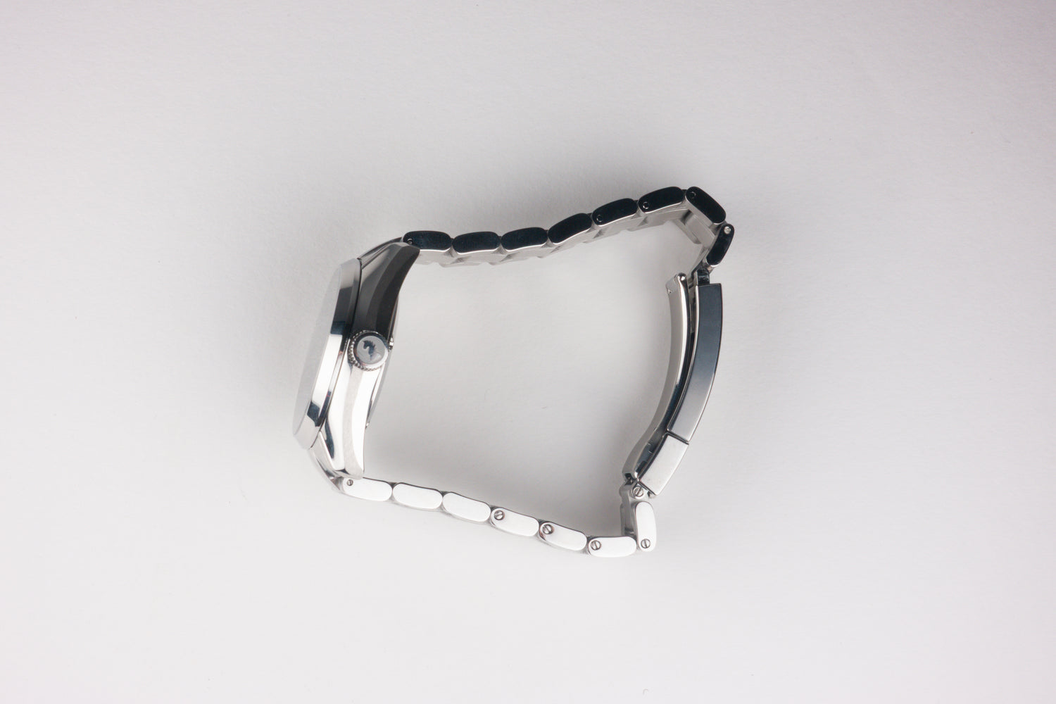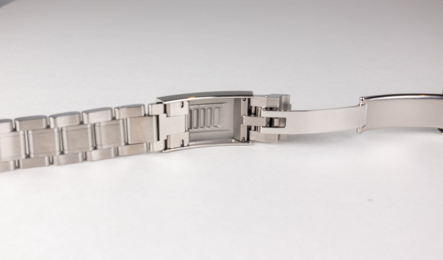 The clasp is milled (not stamped) from a single piece of steel and incorporates a slide-lock micro-adjustment system for precise, on-the-fly sizing. Its robust construction ensures a secure fit while allowing quick, tool-free adjustments for all-day comfort.